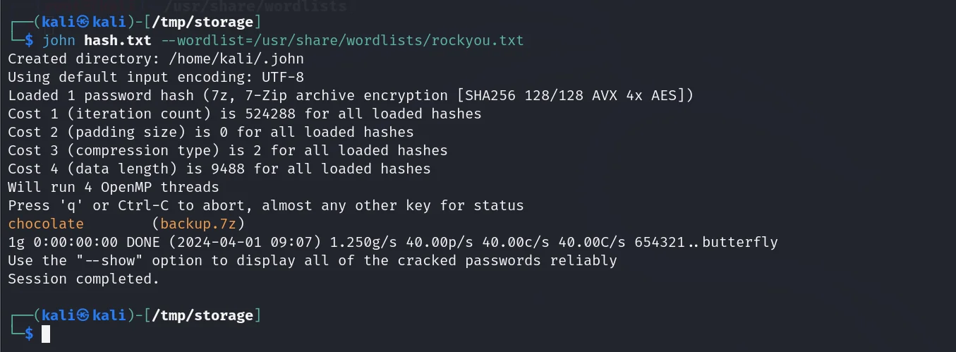 john hash.txt --wordlist=/usr/share/wordlists/rockyou.txt