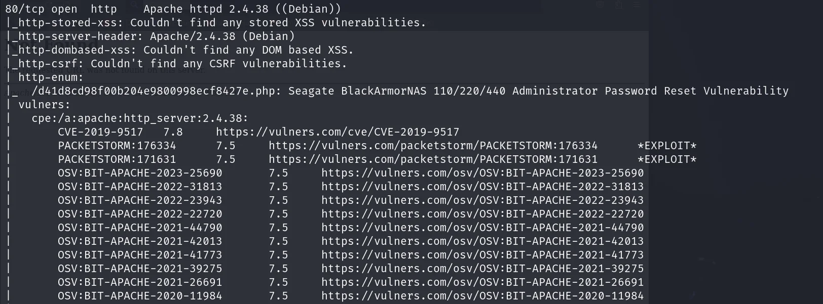 sudo nmap -sT -sV -sC -O --script=vuln -p22,80 192.168.0.177