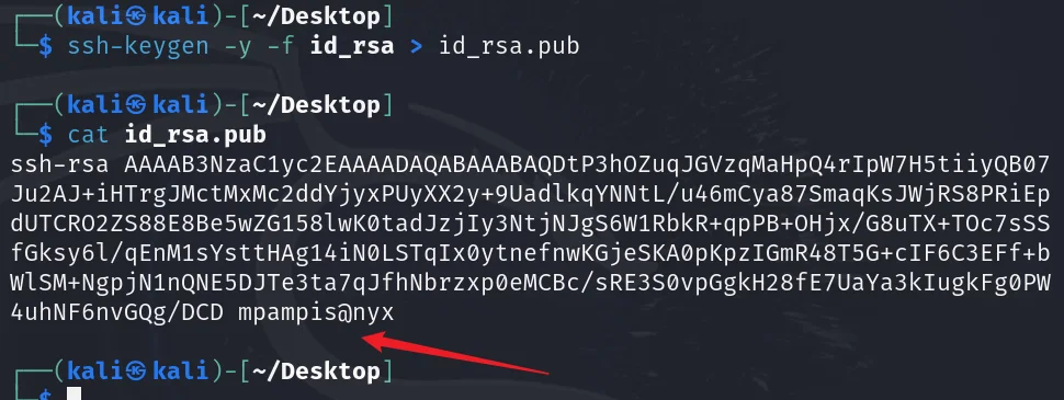 chmod 600 id_rsa #修改权限 获取私钥的公钥信息