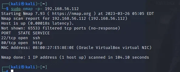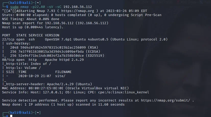 sudo nmap -p22,80 -sV -sC 192.168.56.112