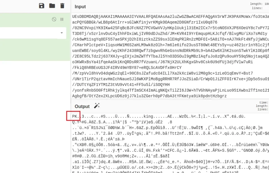 可以发现里面有一个zip格式的压缩文件,压缩文件里有个user